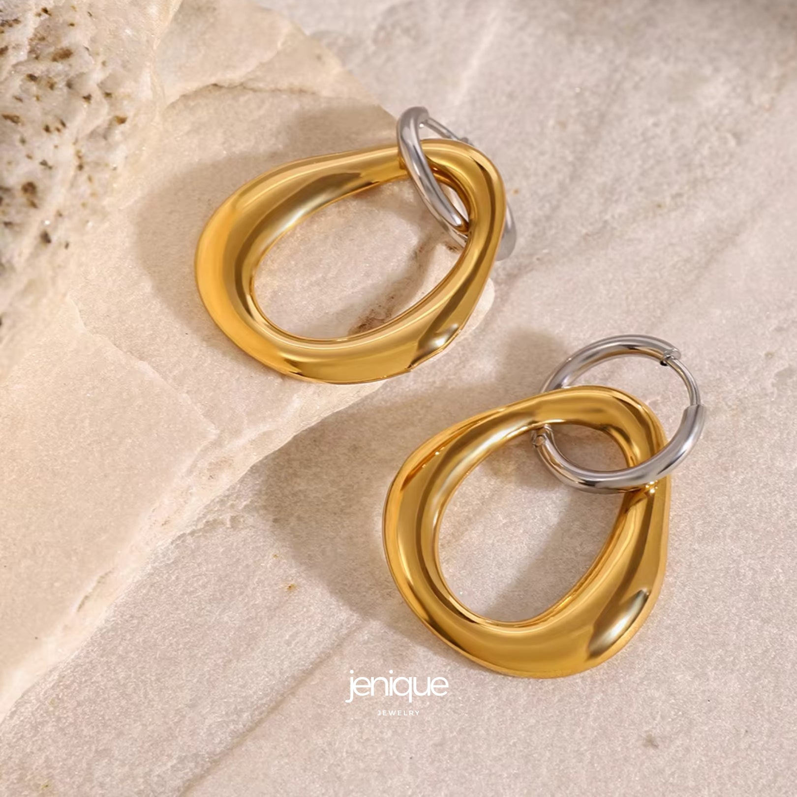 Diese eleganten Creolen vereinen zeitlose Schönheit und organische Formen. Der runde Ring aus hochwertigem Silber bildet das perfekte Fundament für die kunstvolle Gestaltung, während die zarte, organische Goldform dem Schmuckstück eine moderne, aber zugleich natürliche Ausstrahlung verleiht. Die harmonische Kombination aus silbernem Glanz und dem warmen, leuchtenden Gold sorgt für einen faszinierenden Kontrast und macht diese Ohrringe zu einem exklusiven Accessoire für jeden Anlass. Perfekt für stilbewusste Menschen, die Wert auf außergewöhnliches Design und handwerkliche Präzision legen.